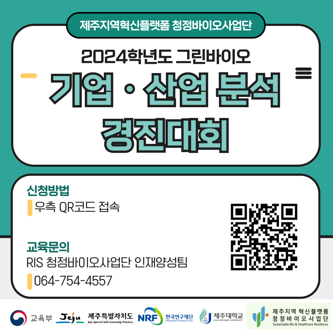 문의: 064-754-4557 / RIS청정바이오사업단 인재양성팀
