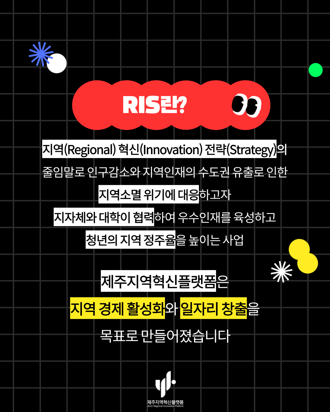 안녕하세요!제주지역혁신플랫폼입니다!아직도 RIS가 뭔지 잘모르겠다고요?오늘 확실하게 알려드리겠습니다!RIS가 무엇인지?제주지역혁신플랫폼이 무슨 일을 하고 있는지?왜 제주도청년이 꼭 알아야 하는지?지금부터 주목해주세요!앞으로 제주지역혁신플랫폼의 행보에많은 관심과 기대, 응원 부탁드려요