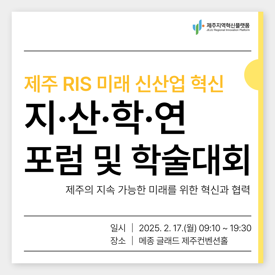 제주 RIS 미래 신산업 혁신 지·산·학·연 포럼 및 학술대회가 개최됩니다!