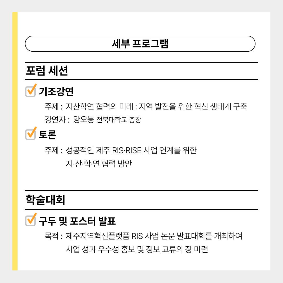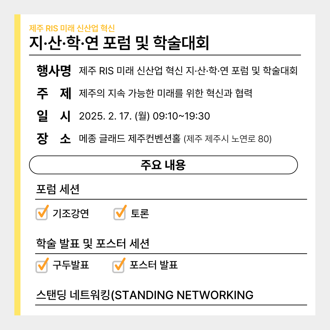 행사명 : 제주 RIS 미래 신산업 혁신 지·산·학·연 포럼 및 학술대회