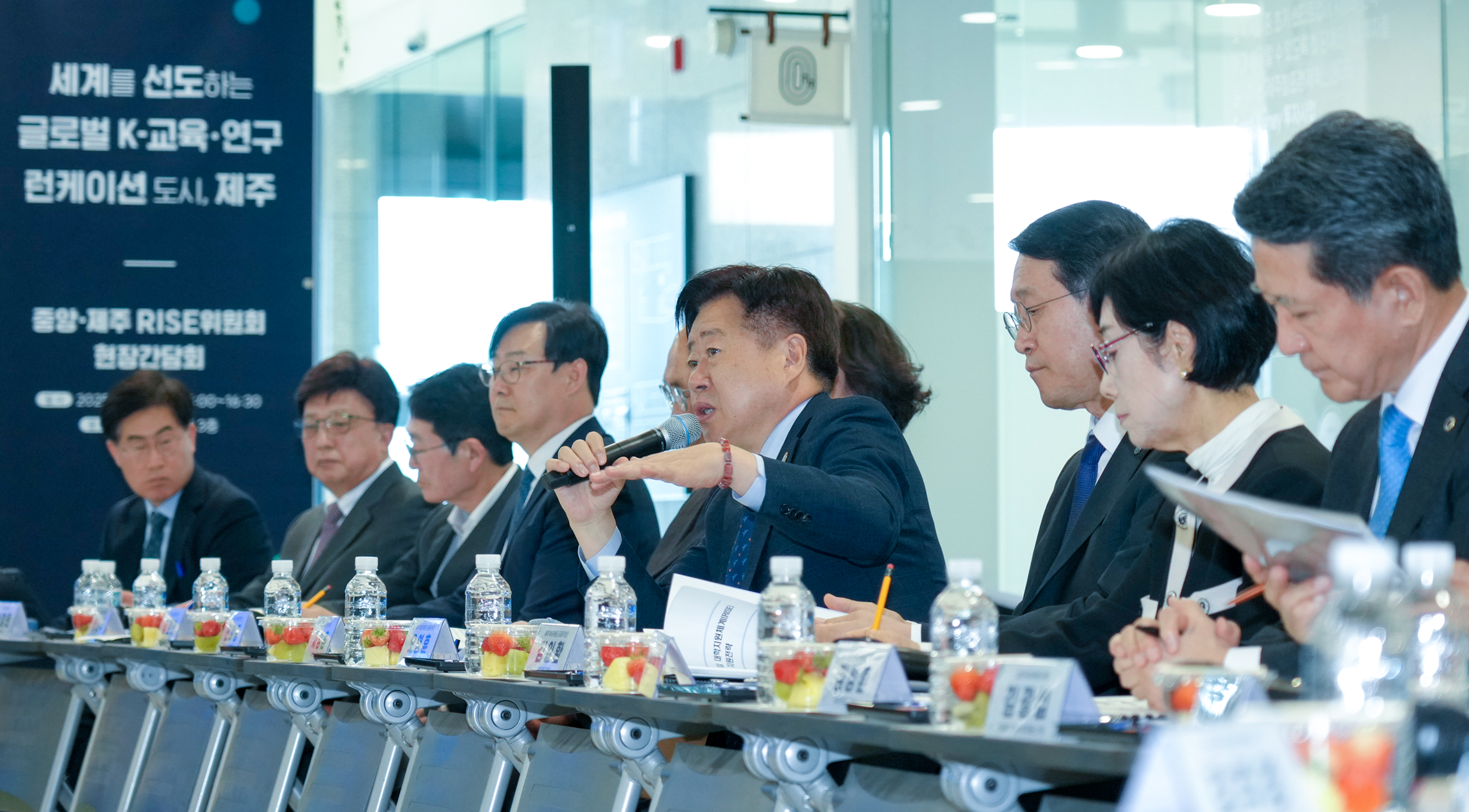 간담회에는 중앙RISE위원회 김헌영 위원장과 위원들, 교육부 관계자, 중앙RISE센터장 등이 참석했다. 제주에서는 제주RISE위원회 공동위원장인 오영훈 지사, 김일환 제주대학교 총장과 위원 및 박경린 제주RISE센터장 등 관계자들이 참석했다.